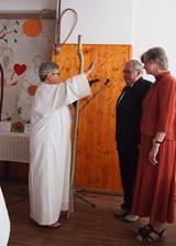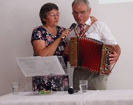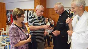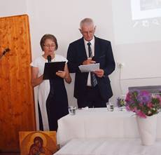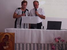 Po obede nasledovala moderovaná prednáška „Aktívny život seniorov“. Po minuloročnej premiére novej formy sa jej opäť výborne zhostili Lacko a Mária Baránkovci, ktorí nám priblížili manželský a rodinný život Vladka a Aničky Gabčíkovcov a Janka a Aničky Vojtekovcov. Vlado a Anička Gabčíkovci z Konskej sú dlhoroční účastníci Manželských stretnutí, robili VPS-ku a starali sa o organizačné, finančné a hospodárske záležitosti MS a v súčasnosti tieto nenápadné, ale veľmi potrebné činnosti robia na MSS. Obidva sú aktívni v ich farnosti, Vlado spieva v zbore, bicykluje, chodí na turistiku a v zime na lyžiach. A voľný čas venuje pre muža netypickej práci: vyšíva pánske košele, ktoré sme mohli obdivovať, lebo ich mali s Jankom obidvaja oblečené. Ďalej sme sa dozvedeli, že im funguje rodinné spoločenstvo, pred Vianocami Deviatnik k Sv. rodine. A Hanka prišla s nezabudnuteľnými zážitkami zo Svätej zeme, ktorú precestovala t.r. v máji.